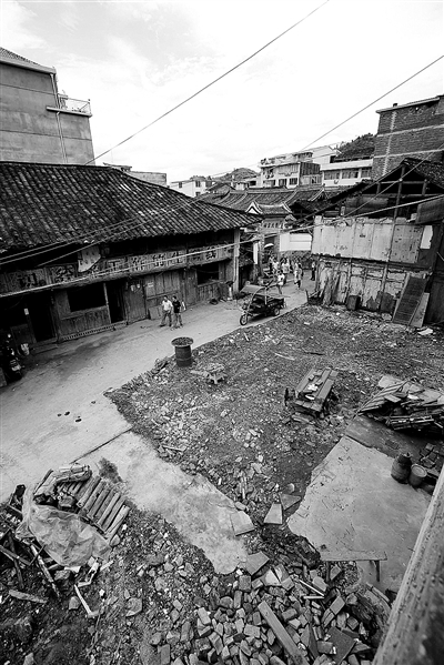 白粉墙村民自行把房子拆除这件事情,我感到震惊却并不感到意外。据我所知,早在十几年前,白粉墙老街的老住民就要求把老街部分拆除、拓宽,作为道路,到了五年前,所有的老街住户对老房子不再修复,这次拆除的房子,其中有两间是新中国成立前建成的,其余都是之后建的。因为是木质结构的房子,柱子原木都已经有不同程度腐烂,房屋倾斜严重,属于高度危房,有些仅仅依靠几根柱子支撑。再加上老街前就一米宽的小路,无论对住户还是行人,都存在很大的安全隐患。村民要求拆除的呼声很大,镇里也一直在想办法沟通,但是保护难度不小。
