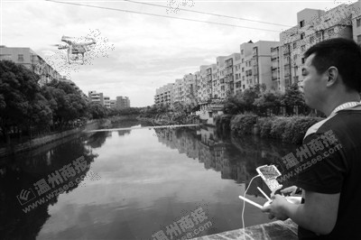温州网讯 昨天中午,雨过天晴,温州瞿溪河边一架白色无人机缓缓升空,沿着河道上方20多米巡逻。通过操控者管洪捷的手机屏幕,一公里多的河道状况在一分多钟里便一览无遗。