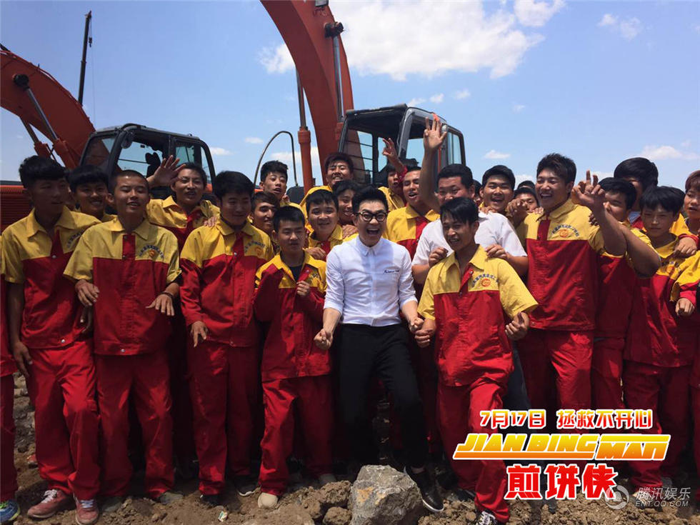 腾讯娱乐讯由大鹏自编、自导、自演的2015暑期档唯一爆笑喜剧《煎饼侠》自一露面便吸引了无数人的关注。6月11日,大鹏携《煎饼侠》现身山东蓝翔高级技工学校,与学生现场交流互动。当天活动现场一片欢乐,学生舞狮,大鹏开挖掘机,并有赠书合影、集体摊煎饼等环节。整个活动其乐融融,喜气十足。