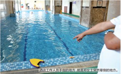 “郑女士是常客,有我们这的月卡,她技术不错,身体看起来也很健康,以前没出过什么状况。”这家酒店负责泳池管理的张经理说,当天下午,郑女士在池边做了几分钟热身,便进入水中,一口气游了80多米(泳池长25米),后来在池边休息时,突然晕倒在水里。