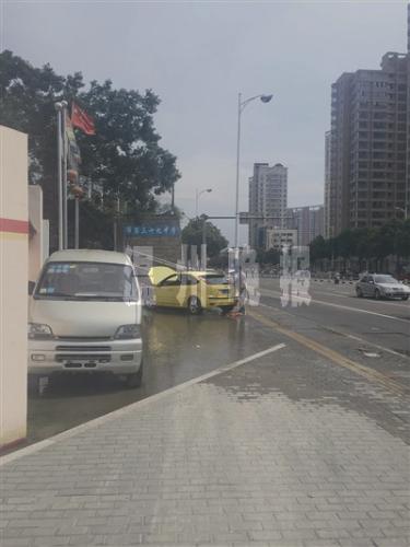 昨天下午,温州市区府东路与杨府山路交叉路口附近,一辆黄色小车撞坏了路旁的消防栓,喷出的水柱高达2米多,附近路面瞬间成了一片“汪洋”。