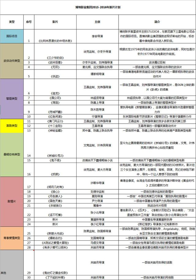 附:博纳影业集团2015-2016新片计划片单