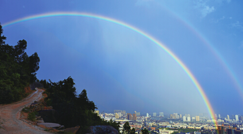 昨晚6时许,平阳、苍南一带雨后出现“双彩虹”,大概持续20多分钟,微信朋友圈瞬间被“双彩虹”美图刷屏。