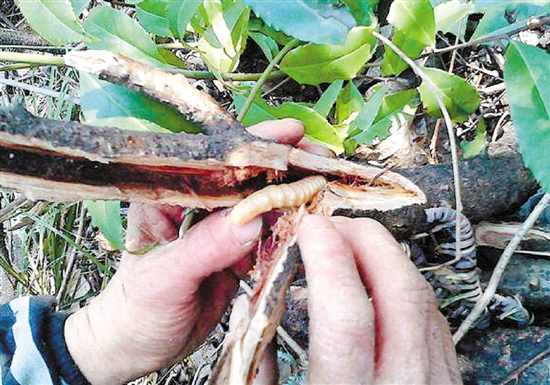 难道是什么安胎滋补的草药?我当时一头雾水。只见婆婆拿小刀把树枝划了一道缝,用力一掰,树枝裂开,里面露出一条小拇指粗细的乳白色虫子。我最怕虫子之类的东西,看到这么大一条虫,当场就吓得说不出话来。婆婆又从另外几根树枝里掏出几条一样的白虫子,说这是给我吃的,可以补身子。