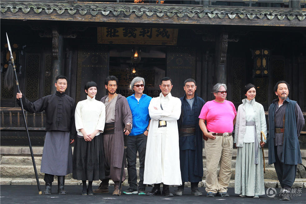 腾讯娱乐讯(文/姜宇佳)6月17日,由陈木胜导演、洪金宝任动作导演,刘青云、古天乐、彭于晏、袁泉、江疏影、廖启智领衔主演,吴京特别演出的动作大片《危城歼霸》在绍兴举行了首次发布会。陈木胜导演介绍,“每个角色都可能是恶霸”,人人都有不同的武器傍身。众主演也以片中造型齐齐亮相,甚少出演古装片的刘青云时隔二十年后再演动作戏,彭于晏则以首次以大胡子浪人形象亮相。