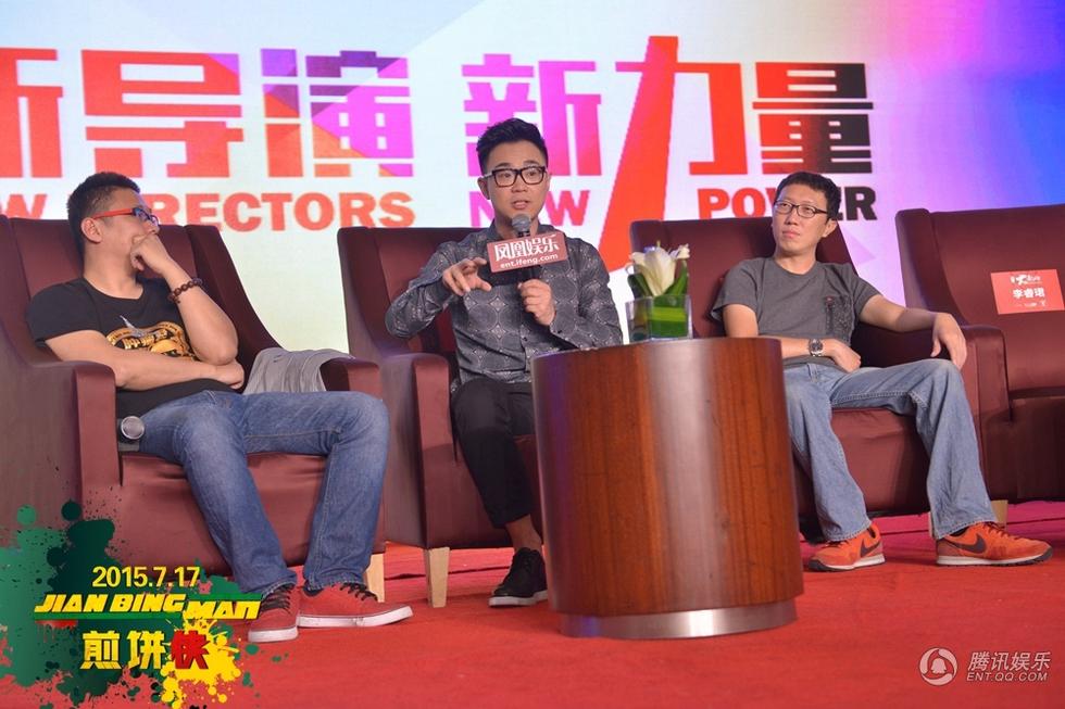 在当晚的互联网电影之夜现场,组委会还打造了时下颇受推崇的弹幕评论系统,并为大鹏特别准备了一具“煎饼餐桌”,让大鹏在现场大秀一把摊煎饼技巧。所谓近水楼台先得月,距离大鹏最近的何炅在第一时间尝试了大鹏谈煎饼绝活,并在第一口后立马给予了五星好评,现场观众也纷纷发弹幕表示“好想吃!”此后,在活动当晚推出的3D打印技术中,大鹏写出的“煎”字也预示了《煎饼侠》也将无“煎”不摧,势不可挡。作为暑期档内的唯一爆笑喜剧,《煎饼侠》也将如当晚的煎饼一样分量十足,拯救不开心。