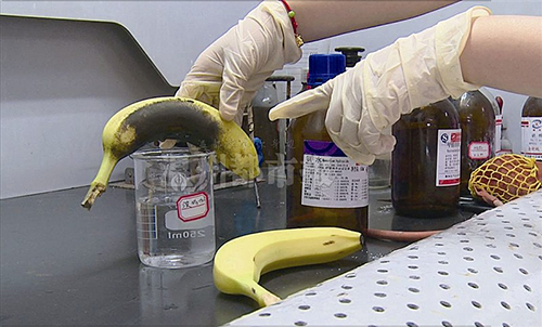 香蕉+氨水外表熟透了,果肉还是生涩的