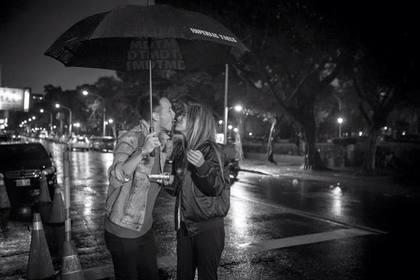 王阳明在脸书放上之前拍微电影《劫》的照片,只见两人互动好自然,有时他紧搂着她亲她发丝,有时是十指交扣,有时是她从后环抱他,还有共吃餐点口水交融,亲密到都快嘴对嘴了。
