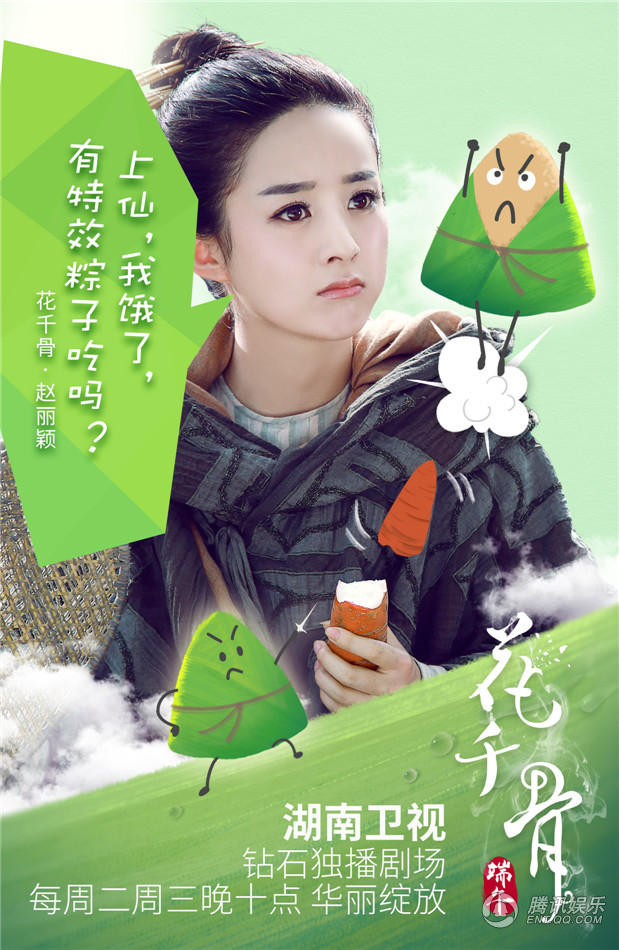 腾讯娱乐讯由慈文传媒集团出品,唐丽君担任制片人,导演林玉芬、高林豹执导,霍建华、赵丽颖等超强阵容连袂出演的传奇仙侠大剧《花千骨》正在每周二、周三晚22点的湖南卫视钻石独播剧场热播中。今日该剧曝光了端午节海报,白子画(霍建华饰)、花千骨(赵丽颖饰)、夏紫薰(蒋欣饰)、杀阡陌(马可饰)、东方彧卿(张丹峰饰)、霓漫天(李纯饰)围绕吃不吃粽子,怎么吃粽子展开大讨论,逗趣的设计剧情令人捧腹开怀。