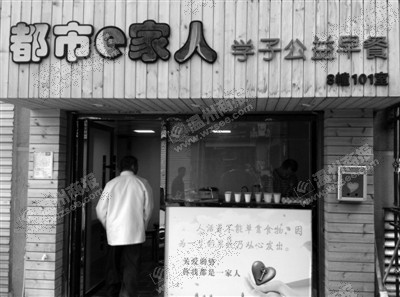 都市e家人“学子公益早餐店”其实是由鹿城区都市一家庭教育互助协会出资开设的,该协会是在鹿城区民政局登记成立的民间组织。该协会负责人包之易告诉记者,该协会的宗旨是尽己所能,不计报酬,帮助他们,服务社会……协会从2014年10月成立以来,他们一直在寻找服务社会的项目,在考察后,决定开设学子早餐店向学生免费派送早餐,在派送期间还将免费对象延伸至环卫工人和保安。