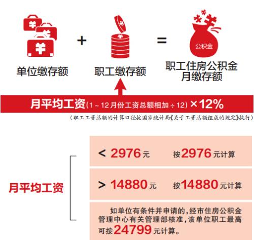 (三)职工本人的2014年月平均工资以职工本人2014年1~12月份工资总额相加除以12计算。计算后,职工本人的2014年月平均工资如低于2976元(2014年全市职工月平均工资4959.67元的60%的进元计算值)的,按2976元计算;如高于14880元(2014年全市职工月平均工资3倍的进元计算值)的,按14880元计算;如单位有条件并申请的,经市住房公积金管理中心有关管理部核准,该单位职工最高可按24799元(2014年全市职工月平均工资5倍的进元计算值)计算。