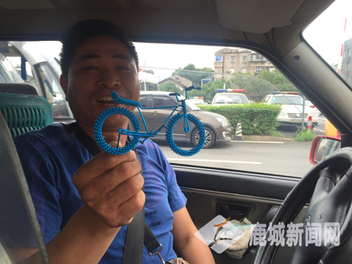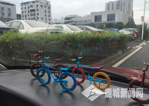 温州网鹿城支站讯 这是一辆常见的普通出租车,仪表台上放着2个手工小自行车,在驾驶座的挡板上也挂着许多五颜六色的自行车工艺品,它们全都出自这辆车的“主人”——的哥古亚海之手。