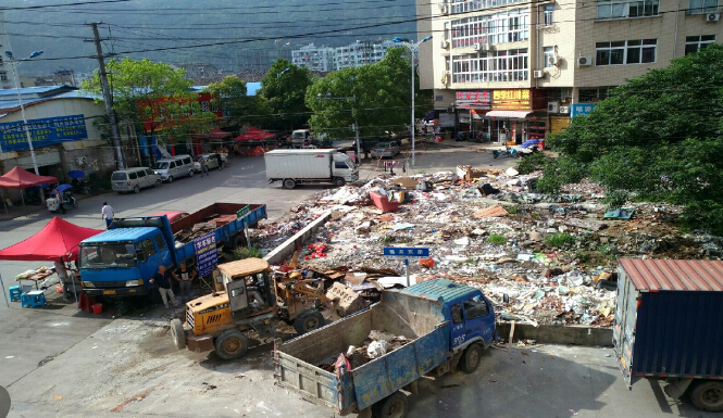 就在记者截稿时,据网友反馈,保洁人员及铲车、货车正在现场清运。