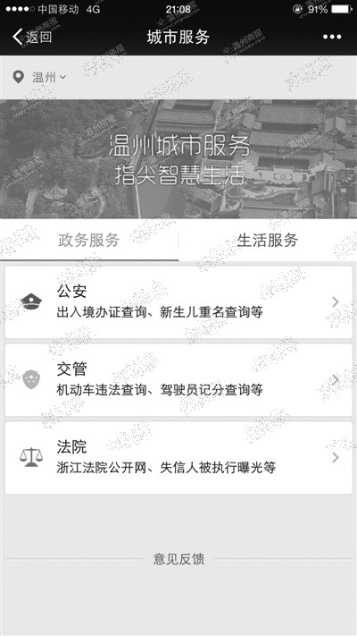 温州网讯 仅仅用支付宝来买东西,用微信来聊天的玩法已经过时啦,昨日,浙江政务服务网正式进驻这两个手机APP,在这两大平台上线“城市服务”功能。今后温州市民将可以直接通过微信和支付宝,查询交通违章、天气、路况等实用信息,以及实现预约挂号、交通事故处理、法院诉讼等一系列公共服务。