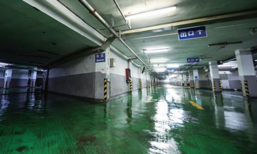 停车库分为两个区域,区域间有分区标识牌指引。行车道被漆成了绿色,中间的黄色分割线将其分为两条,每边车道都标有指引行驶方向的箭头。停车位被白线明确划出,设有助停的软隔离设施。库内照明灯是声控的,消防、警示设施齐备,设计标准之高与城市内的大型停车库无异。