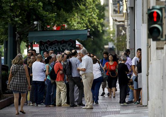 希腊银行将停止营业 民众提款机前排长队挤兑