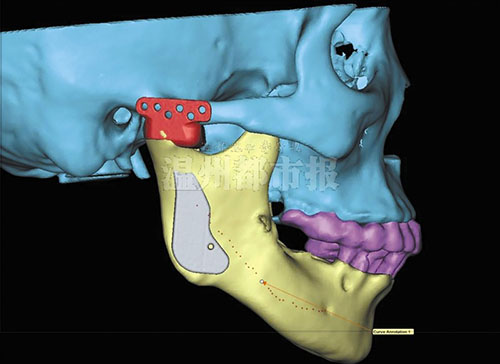 这个手术有两大难点。第一点是要准确定位。方一鸣解释,手术中,将关节假体放入患者面部时,如果位置不准确,将影响手术的效果。“即使出现1毫米的偏差,也会影响上下牙齿的咬合。”关节位置放准确后,将面临第二个难点——固定关节假体的固位钉钉在哪里?“下钉的骨头里如有神经或血管,就需要避开。”方一鸣说,如果固位钉损伤了骨神经,就会造成下嘴唇麻木,而这种麻木有可能是永久性的。