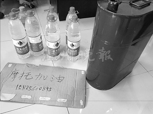 沈某是湖北人,在鞋厂工作,平日里骑着摩托车上下班。沈某说,因为住的地方离加油站比较远,他每次都要拿着铁桶到市区仰义前京的一家加油站,登记身份证后购买汽油。后来,他发现附近很多开摩托车的人像他一样,嫌去加油站加油麻烦,于是他索性在出租房里挂出“摩托加油”牌子,留下手机号码卖起了汽油。