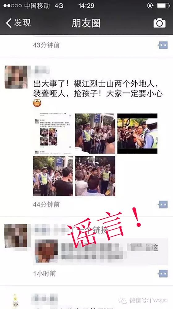 晚间,记者在丽水市公安局官方微信上找到一则“人贩抢孩子事件系误传”的消息,对比台州和丽水两条微信的图片、内容,终于真相大白,原来事情发生在丽水市青田县,聋哑人不是人贩子,而是帮忙找孩子的好心人。
