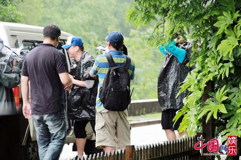 套在不透气的垃圾袋里,时间一长就变得十分闷热。对着摄像师,热坏了的黄渤不由感慨:“穿着垃圾袋真减肥。里面小汗呼呼的冒,外面小雨瑟瑟得飘。”虽然雨衣是失败的,但黄渤自制的雨帽却是非常吸引眼球。瞧这把本人衬托出的富贵范儿!颇为自得的“设计师”黄渤炫耀道,“你没看出来贵妇的气质么?”应和着黄“大嫂”,“自拍帝”孙红雷赶紧拿出手机,记录下了这一刻。