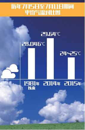 1981年以来的同期数据则显示,7月5日至7月11日这一周的平均气温为28.046℃。也就是说,本周的平均气温要比历年的平均值都低3℃至4℃,这可能是30多年来盛夏里最凉爽的7天了。
