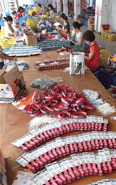 平阳县水头镇宠物商品琳琅满目,既有宠物零食类产品,又有宠物户外用品以及装饰带类产品,共达六十余系列,上千个品种,产品出口20多个国家和地区。陈翔摄