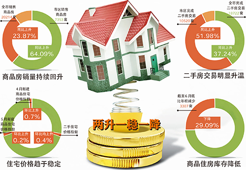 市区商品住宅库存已持续6个月下降,截至6月底,比年初减少3387套、40.72万平方米,分别下降29.09%和27.37%。