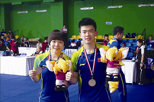 温州网讯 2015年羽毛球亚洲青年锦标赛前天在泰国曼谷鸣金收兵,温籍两名羽毛球小将勇夺七个项目中四枚金牌,分别是:苍南籍18岁的林贵埔在男单决赛中以2∶0战胜韩国选手徐升载,两局比分是21∶16与21∶11。鹿城籍18岁的郑思维与陈清晨配合默契,在混双决赛中以2∶0战胜韩国组合崔钟宇/金惠贞,两局比分是21∶8与21∶12。男双决赛,郑思维再次出战,与何济霆合作,以2∶1战胜队友韩呈恺/周昊东,问鼎桂冠。他们还与其他队友合作,夺得这次锦标赛男子团体冠军。