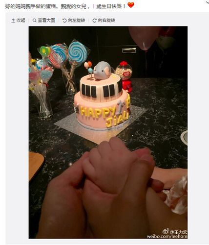 昨晚,王力宏在微博晒出一家三口牵手照,为女儿庆祝一周岁生日。他留言称:“你的妈妈亲手做的蛋糕。亲爱的女儿,一岁生日快乐!”