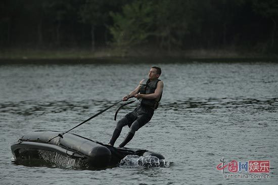 侦察兵在执行任务的时候,会遇到各种各样复杂的地形,所以要求他们在水上也能顺利执行任务。操舟训练和覆舟训练就成为了侦察兵日常训练的项目之一。在训练之前,男子汉们分成了两个小组进行皮艇打气比赛。大哥张丰毅和“精壮汉子”欧豪分别为两个小组的组长。为了赢过年龄比他小的刘昊然,“精壮汉子”欧豪也是蛮拼的,在体会练习的时候就迫不及待的给自己组的皮艇打气,看得刘昊然也“坐不住了”,非要也给自己组的皮艇打气。这时张丰毅显示出一贯的大气谦让,安慰刘昊然道“没事”。姜还是老的辣,在比赛时更是淋漓尽致的显示出来,张丰毅谨记教官的经验,控制住了整组打气的节奏,而“精壮汉子”欧豪年轻气盛,打气的节奏频率高却效果不佳,累的满头大汗但成效却并不好。欧豪在打气时虽拼尽全力,无奈在战术上不敌大哥张丰毅,无奈败北。