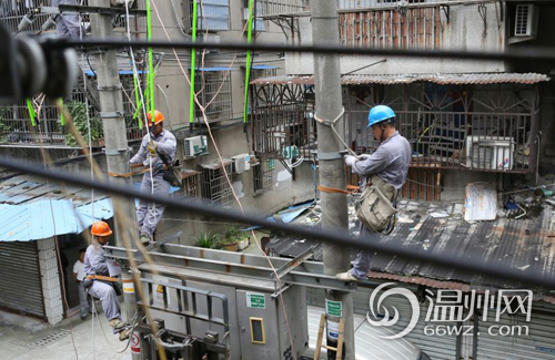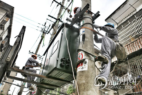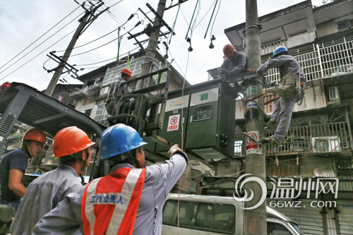 温州网讯 7月10日,天空飘着毛毛细雨,温州鹿城区翠微新村9幢附近,检修人员早已在小区内开展登杆作业,对片区9台变压器以及所属配电箱进行检修,并赶在台风登陆前完成消缺工作。更换的新型配电箱内闸刀带有保护功能,一旦附近发生线路跳闸,将会自动闸离故障线路,确保其他用户供电,相对于老款配电箱更安全更稳定,对抗击台风也会更添保障。