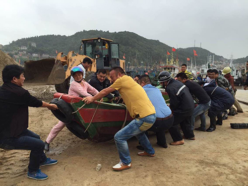 洞头:干部群众齐心抗台 帮助渔船进港避风