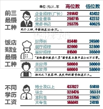 部分职位劳动力市场工资指导价出炉 干啥薪资最高