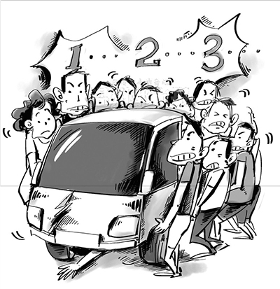 女子躲闪不及被“吞”车底 正能量群众抬车救人