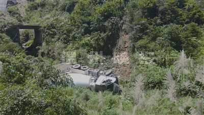 雨天路基松软 搅拌车“失足”冲出山路翻下山坡