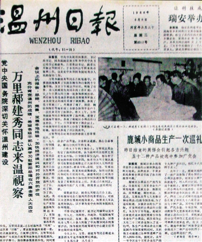 正是有了这次温州之行,3个月后,7月4日,万里在新华社“国内动态清样”《温州模式理论讨论会建议成立“温州试验区”》一文上才会不假思索地作出批示:“王芳同志,可支持大胆试验。”王芳即当时的浙江省委书记。