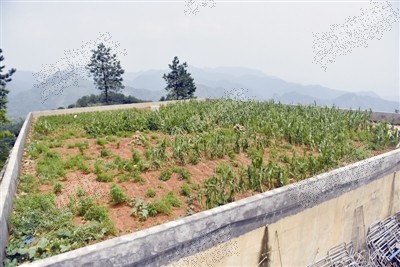 老陈说,在猪舍房顶建农场的想法是在去年夏天时想到的,“虽然山顶气温比山下低,但太阳直射下来温度也非常高,所以想在屋顶上种些东西挡阳光”。当时,老陈花了好多时间才把300多立方米的泥土运到屋顶,接着撒上种子,种上土豆、辣椒、玉米等作物。成熟后,部分作物用来作饲料喂猪。