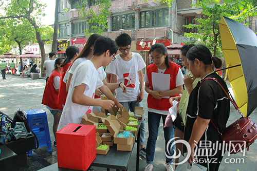 温州网讯(通讯员 蒋於晨)7月15日,温州医科大学药学院暑期实践团的志愿者们在慈湖、五马街两地义卖手工自制的药皂,筹得1500元善款用于关爱慰问来自慈湖社区农民工家庭的三位贫困儿童。