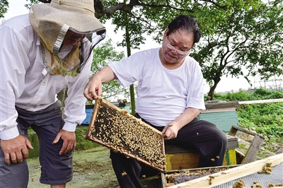 昨天下午,记者邀请养蜂专家李生观前往汀田,帮蜂农诊断蜜蜂大批死亡的原因。杨冰杰摄