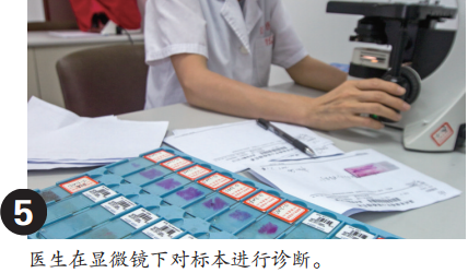 “成品”标本还需经过烤片和染色两个步骤,放在仪器中犹如“烘焙”,烤片需要两个小时左右,染色一般要超过两小时。“接下去是显微镜下的较量,我们常常被称作‘doctor of doctor'(医生的医生)。”潘丹说,病理医生要通过显微镜进行反复研究患者的病情,给门诊医生提供精确而权威性的诊断意见。