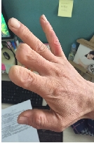 陈六新今年41岁,2000年从老家湖北武汉来到瑞安,在一家私人小厂做车床工作。陈六新至今都忘不了2001年4月3日的那个晚上,他像往常一样加班,却不慎被机器压伤手指,致使右手的食指和中指残缺(如图)。