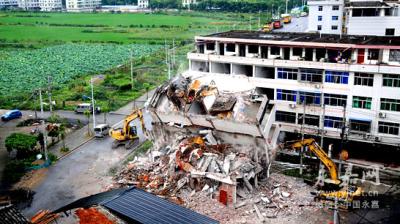 温州网永嘉支站讯 7月23日下午,上塘中心城区组织相关单位对环城北路西向延伸工程中的26户28间民房进行拆除,该工程建成后将使环城北路下堡、中塘段等道路“血栓”得以疏通,环城北路下堡卡口的“断头路”将被打通,到时可有效缓解下堡、中塘片区的交通拥堵情况。