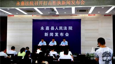温州网永嘉支站讯 7月23日下午,县法院召开新闻发布会,通报县法院“打击拒不执行判决、裁定犯罪行为”情况,并公布2013年以来涉及拒执犯罪的4个典型案例。报纸、电视、网络新闻媒体记者和有关代表参加了发布会。