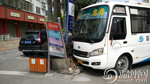 温州网讯 公交车遇指定站牌时理应靠边停车载客,可平阳的一辆公交车却一改往常风格,直接“吻”上了路边站牌,罢工了。