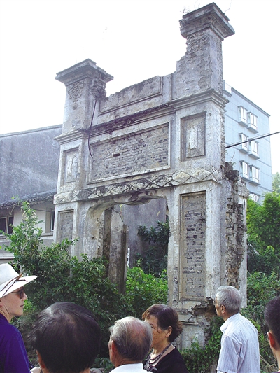 1945年毁于日军榴弹下的朱镜宙故居台门遗迹。