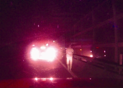 当天晚上10点10分,温州高速交警二大队民警巡逻至G15沈海高速台州方向飞云江大桥上时,发现一名戴眼镜的男子正在第三车道上快速行走,高速交警立即让其先上警车。