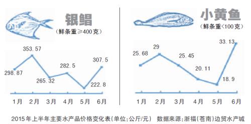 而像以往价格高得吓人的野生大黄鱼等高档海鲜,今年上半年的价格也趋向理性,“最明显的例子就是,过年期间9两以上的野生大黄鱼还卖到1200元一斤,节后就‘腰斩’降到600元。”陈良株说,影响水产品价格走势变化的除了渔业资源因素外,国家宏观调控政策、渔业生产的周期性、季节性变化,消费者对水产品消费需求的变化等都在一定程度上影响着水产品价格变化。尤其像报告中提到淡水产品同比下降3.7%,主要就是受气候因素影响。“上半年总体气候平稳,有利于淡水鱼生长,以致淡水鱼产量高,价格同比下降明显。”陈良株说。