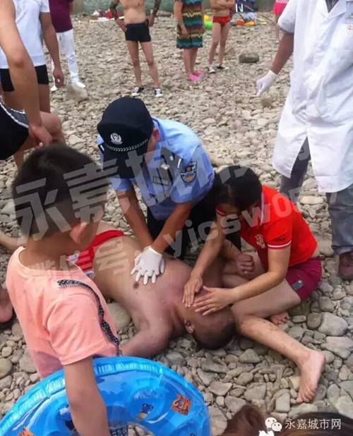 6月26日13时许,楠溪江二桥兆潭水段发生溺水事件。民警到场现场后,与当地村民、游客合力将溺水男子救上岸。虽经紧急抢救,但最终没能挽救这条年轻的生命。