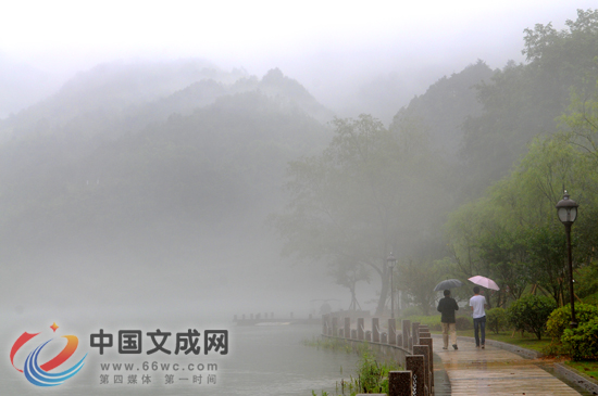 近日,记者跟随新联村书记张仁健步入滨水公园,公园内梅花、石榴等树木林立,苍翠葱郁,步行道上铺满花岗岩,平整宽敞,石质护栏长短相间,沿着河岸自然蜿蜒。因飘着雨的缘故,河面上泛起一层如轻纱般的薄薄云烟,与山水相映成趣,仿若游步太虚、置身仙境。