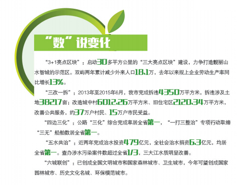 这些美丽“蝶变”的背后,离不开市委、市政府一系列有效举措为“推手”。如在“十大举措”中提出要主攻治水和“三改一拆”“两大突破口”,尽快改善发展硬环境,打造“美丽浙南水乡”;要加强城与乡、发达地区与欠发达地区“两大统筹”,加快城乡一体化发展,努力建设生态型、组团型、智慧型大都市区;作出实施生态化、信息化、时尚化、都市化、国际化的“五化战略”的决定等等。